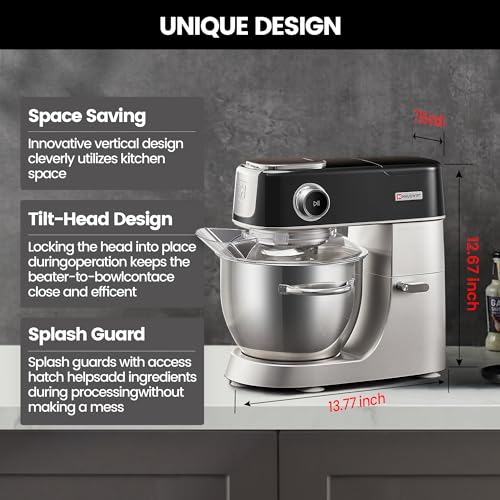 【11 Speeds and Tilt Head Design】With 11 different speed options, this kitchen mixer is perfect for mixing bread dough, thick batters, meringues and whipping cake creams, plus a lower speed for blending and refining your most delicate mixtures. ingredients. The tilt-head design of the mixer makes it easy to install or remove the bowl and accessories.