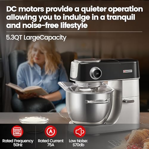 Specification: HAUSWIRT Electric Stand Mixer, LED Household Stand Mixers, 5.3QT Electric Food Mixer Stand, 11Speeds 3-IN-1 Kitchen Stand Up Mixers with Stainless Steel Egg Whisk, Dough Hook, Flat Beater, Black