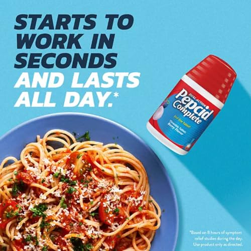 BERRY FLAVOR CHEWABLES: Enjoy the convenience and pleasant taste of Pepcid Complete Chewable Berry antacids chewable extra strength making it easy to get acid reflux relief on the go without the need for water.