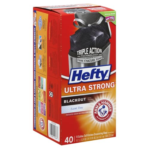 Specification: Hefty Ultra Strong Tall Kitchen Trash Bags, Blackout, Unscented, 13 Gallon, 40 Count
