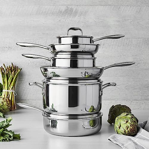 Specification: HENCKELS Clad Impulse 10-pc 3-Ply Stainless Steel Pots and Pans Set, Cookware Set, Fry Pan, Saucepan with Lid, Saute Pan with Lid, Dutch Oven with Lid, Stay-Cool Handles, Induction Stove Compatible
