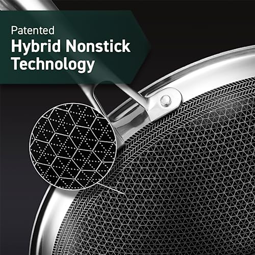 HexClad PATENTED TECHNOLOGY: The hexagon design is created through a laser etching process to provide both stainless steel and non stick surface. This dual surface allows your non stick pan to sear still while using less oil, grease, and butter.
