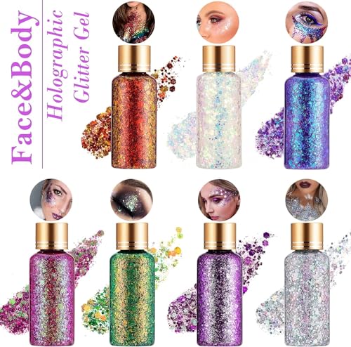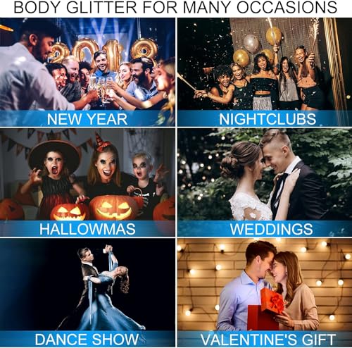 MULTI-PURPOSE ¡ª Body glitter gel can be attached to eyes, lips, face, hair, collarbones, shoulders, nails, etc., for you to easily create stunning supermodel makeup for parties, weddings, birthday parties, stage shows, bars, nightclubs, holiday revelry, etc.