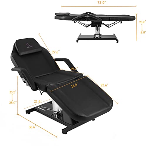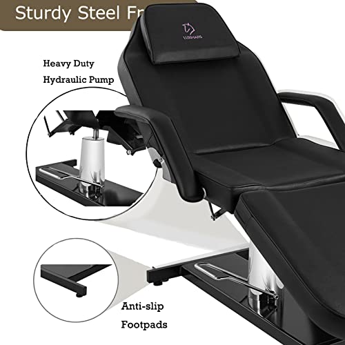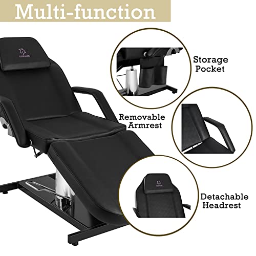 Hydraulic Facial Chair Tattoo Chair Adjustable Professional for Esthetician Beauty Lash Extensions Spa Table Esthetician Chair Spa Beds for Esthetician with Storage Pocket – Black