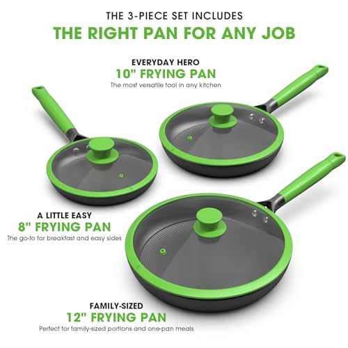 Specification: imarku Non Stick Frying Pan, 8&10&12inch Frying Pan Set with Lids, 3 PCS Nonstick Cast Iron Skillets, Frying Pans Nonstick with Lid Cast Iron Pan with Stay Cool Detachable Handle