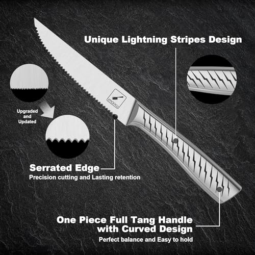 Specification: imarku Steak Knives, Serrated Steak Knives Set of 6 with Lightning Bolt Handle, Premium One Piece Steak Knife Set, High Carbon Stainless Steel Steak Knives Set for Kitchen, Dishwasher Safe