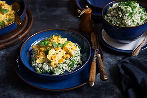 The Imperial Blue Alternate Pasta Bowl Set of 4 features a striking and bold blue glaze on both the outside and inside of the bowl, and is sure to make an impression. Designed and handcrafted at Denby Pottery by skilled craftsmen and craftswomen. Ideal for curries, pasta dishes, stews, heating up left-overs or to serve puddings with tasty sauces. Protected by a durable glaze, this set promises longevity.