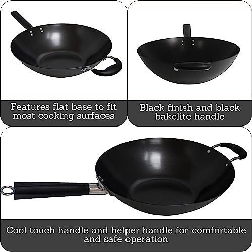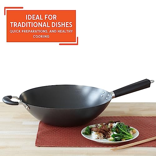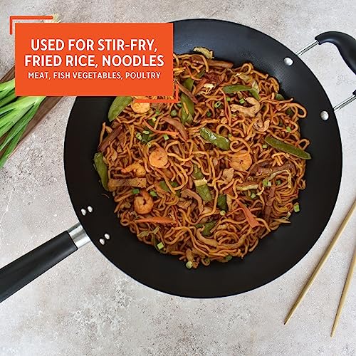 IMUSA USA 14″ Traditional Nonstick Coated Wok with Triangle Helper Handle
