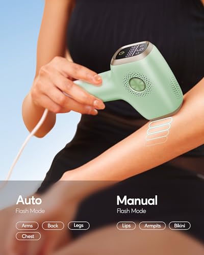 【9 Energy Levels and 2 Flash Modes】The laser hair removal device has upgraded 9 energy levels will adapt to different skin areas and different hair growth speeds, giving you more precise treatment. Auto and manual mode suitable for different body area.Latest touchscreen hair removal device easy to operate.
