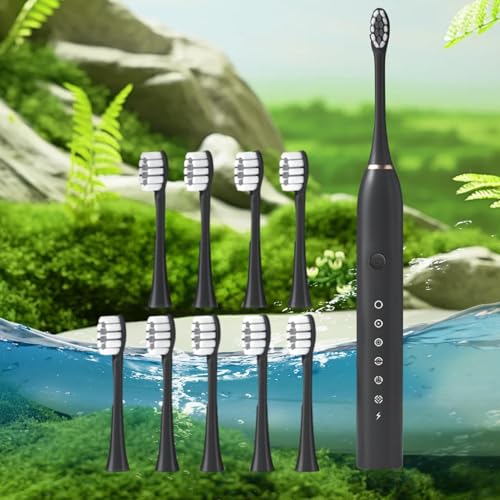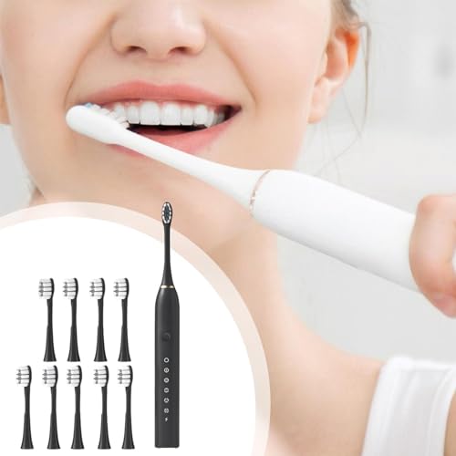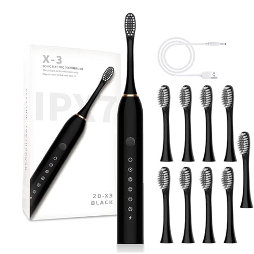 Specification: IPX7 Electric Toothbrush Electric Toothbrush with 10 Brush Heads 6 Cleaning Modes Upgraded Electric Toothbrush Longer Life Faster Chargin (Black, A)