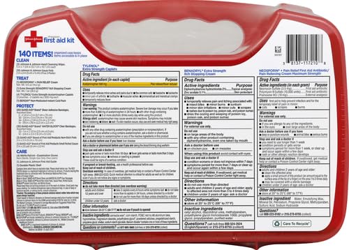 Specification: Johnson & Johnson All-Purpose Portable Compact First Aid Kit for Minor Cuts, Scrapes, Sprains & Burns, Ideal for Home, Car, Travel and Outdoor Emergencies, 140 Pieces