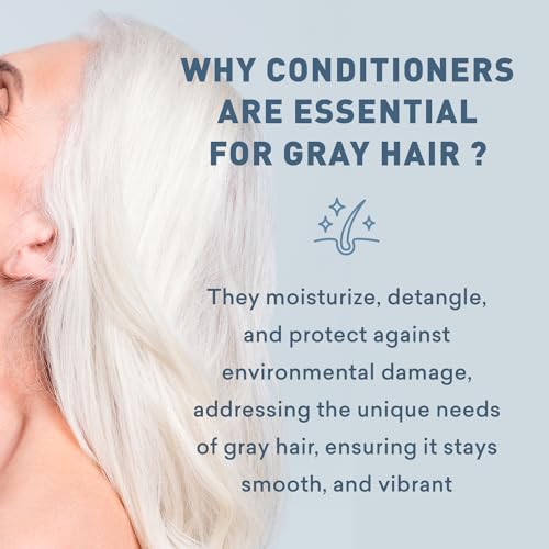Improved Detangling | Our Gray Hair Conditioner will work to help untangle knots and smoothen hair all while providing shine. Our Exclusive leave-in formula is designed to add all day manageability for detangling, and smoothing while enhancing the natural looking body.