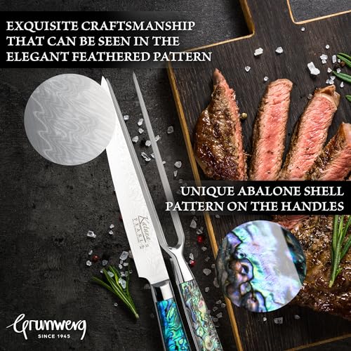 Specification: Katana Pearl Kitchen Knives – Premium Quality Japanese Damascus Steel Blades with Abalone Pearl Resin Handle – 2 PC Carving Knife & Fork Set