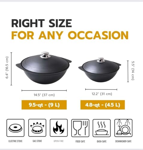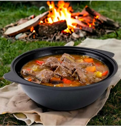 Sturdy and Durable: Crafted from cast iron, this cauldron offers excellent heat retention and distribution, ensuring your dishes are cooked evenly and thoroughly. Its robust build guarantees years of reliable use