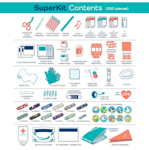 Specification: KeepGoing Large Home First Aid Kit for Kids – 260 Pc. First Aid Kit for Car, Home, Dorm, & Boat with Latex-Free Bandages – 10 x 7 x 3.5 in. Travel First Aid Kit (The Classic)