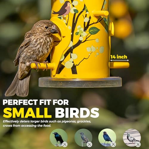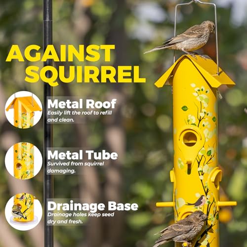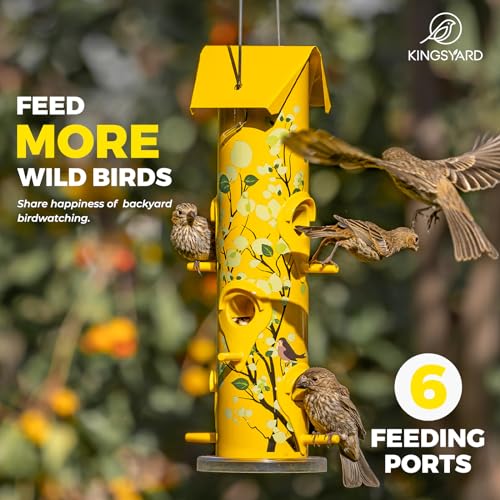 Specification: Kingsyard Metal Bird Feeders for Outdoors Hanging, 6-Ports Tube Bird Feeder, 14 inch, Durable & Weatherproof, Large Capacity for Attracting Wild Birds (Yellow)