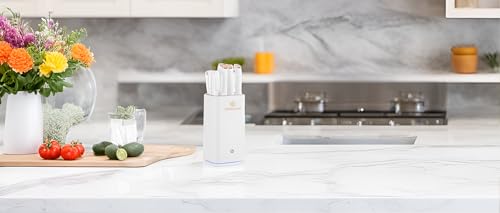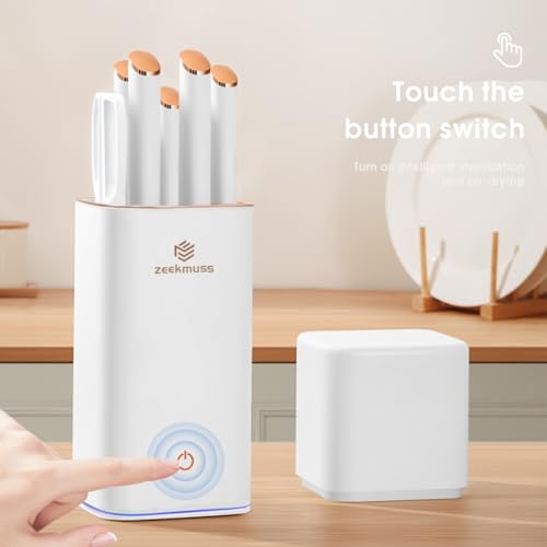 Smart Cleaning: The interior of the knife holder has a cleaning and drying function, waterproof and rust-proof. Wash the knife and put it back on the knife holder and press the button, the base will turn on breathing light and start working. The light goes off after five minutes, after fifteen minutes the cleaning job is over. The knives will become clean and dry.