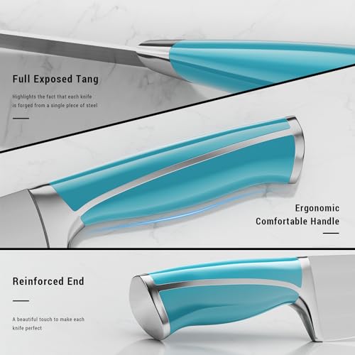 【Rust Proof】Kitchen knife set blades are forged from 3cr13movSuperior high carbon stainless steel, which is heat treated to prevent rust and oxidation.