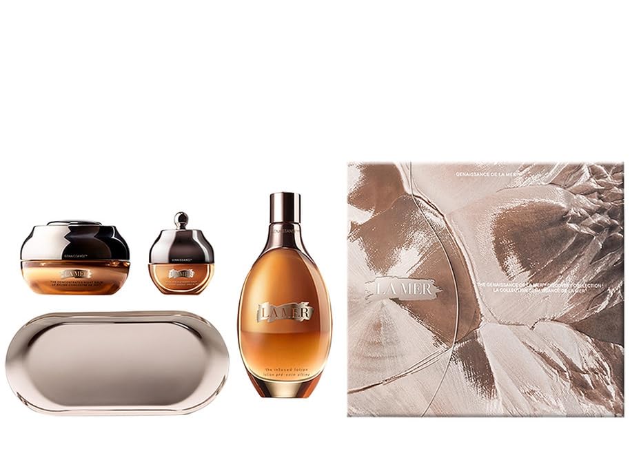 LA MER 4-Pc. The Genaissance de La Mer Discovery Set. All Full Size in Deluxe Box. SET INCLUDES: The Infused Lotion, 5 oz. helps prime skin to receive the power of the Genaissance de La Mer collection; The Eye & Expression Cream, 0.5 oz. visibly rejuvenates the eye and expression areas; The Concentrated Night Balm, 1.7 oz. delivers two waves of activity while you sleep; night after night, a transformation unfolds; Tray