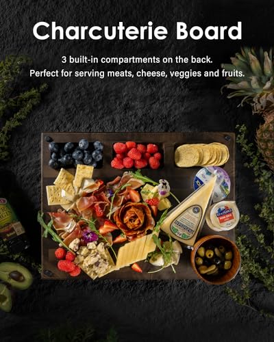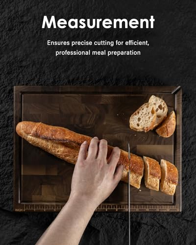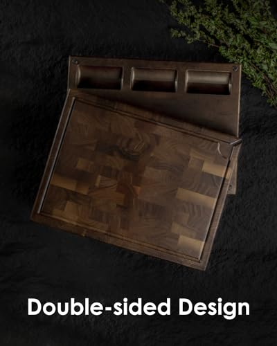 Specification: Large End Grain Cutting Board, Reversible Thick Black Walnut Wood Charcuterie Board Butcher Block for Kitchen Use with Measurements, Juice Groove, Handles, Sorting Compartments, 17″x13″x1.5″