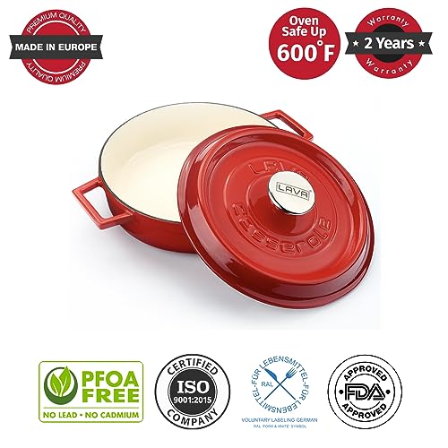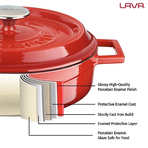 Specification: LAVA 6 Quart Enameled Cast Iron Braiser: Multipurpose Stylish Red Round Dutch Oven Pot with Enameled White Interior and Trendy Lid