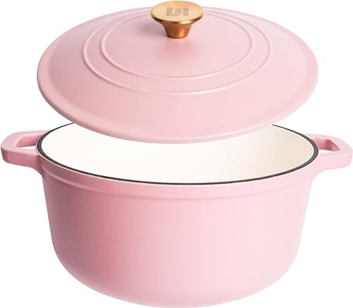 Specification: Lexi Home Cast Iron Enameled Dutch Oven Pot with Lid 6 qt, Sauce Pan, Pasta Server, Stove Top Pot, Dish for Sourdough Bread, Slow Cooking Chicken, Soup & More, Kitchen Cookware – Matte Pink
