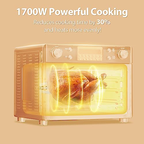 【1700W Powerful Cooking】This toaster oven has a super power of 1700W, and with this power we could cook like roast chicken and roast meat in 30% less time than conventional cooking. The interior of the oven uses the latest cycle heating technology, which is designed to make the food more evenly heated and crispy on the outside and tender on the inside.