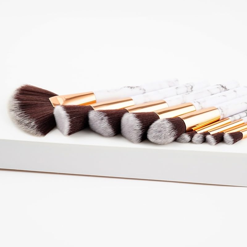 MADALIAN 9 marble makeup brush sets, beauty tools, powder dispersal brush fan-shaped