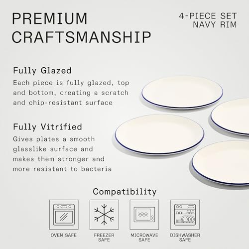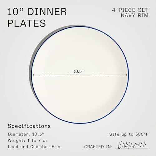 Specification: Made In Cookware – 10″ Dinner Plates – Set of 4 – White With Navy Rim – Porcelain – Crafted in England