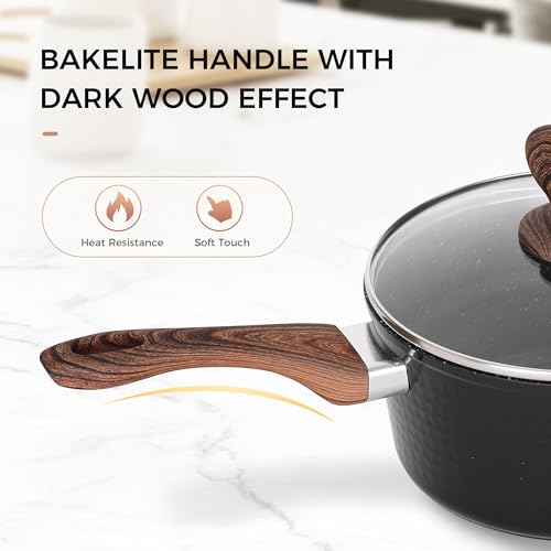 MAISON ARTS Pots and Pans Set Non Stick, 15 Pcs Non Toxic Hammered Cookware Set, Black Granite Induction Kitchen Cooking Sets