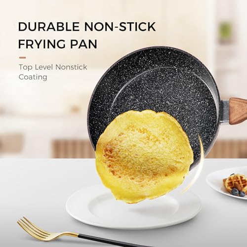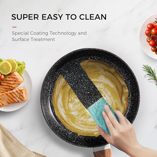 【Super Non-Stick Experience】Inside – High-grade natural marble coating, food just slides right out of the pan, making cooking a breeze