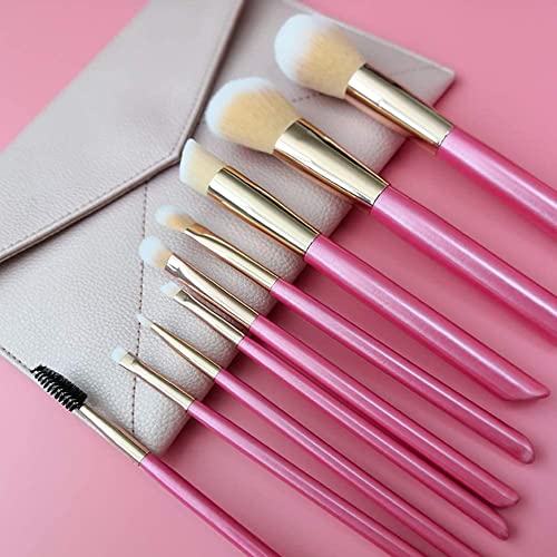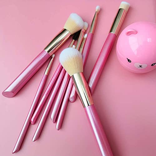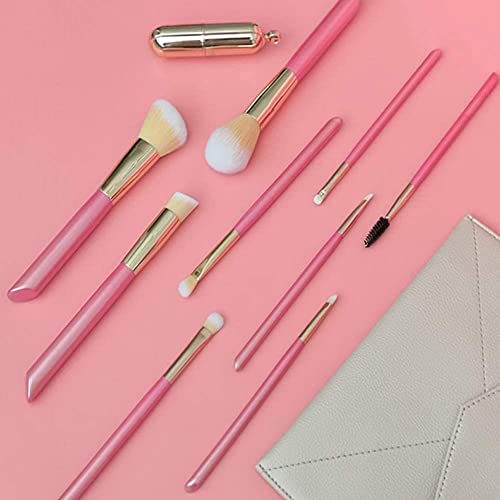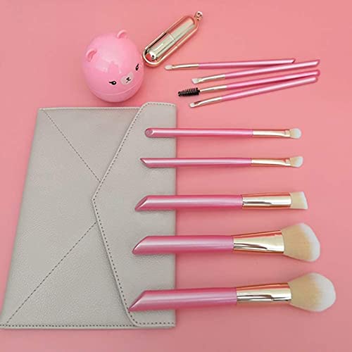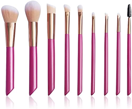Specification: Makeup Brushes-9 Pink Beveled Tail Beauty Tools with Wooden Handle with Case, Face Eye Shadow Eyeliner Foundation Blush Lip Powder Liquid Cream Blending Brush Ideal gift