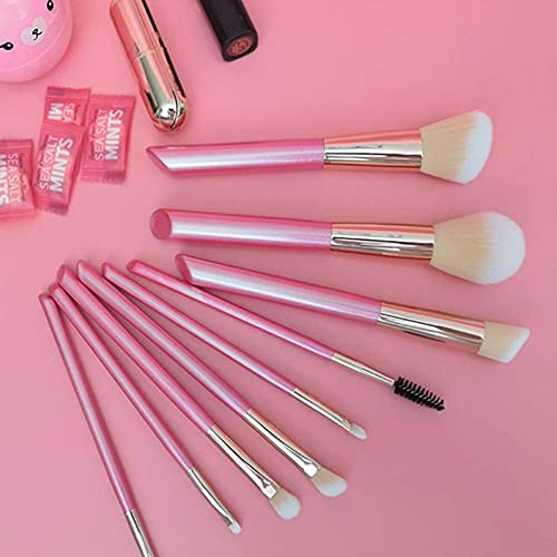 Makeup Brushes-9 Pink Beveled Tail Beauty Tools with Wooden Handle with Case, Face Eye Shadow Eyeliner Foundation Blush Lip Powder Liquid Cream Blending Brush Ideal gift