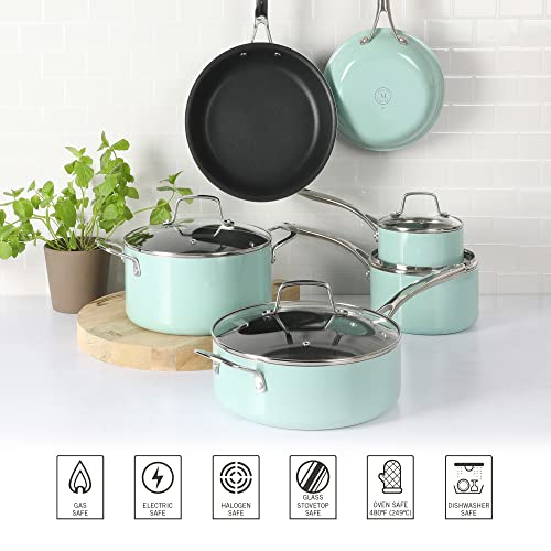 Specification: Martha Stewart Lockton Premium Nonstick 10 Piece Enamel Heavy Gauge Aluminum Pots and Pans Cookware Set – Martha Blue