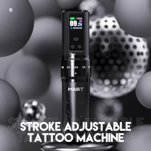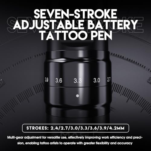 Adjustable Real 7 Strokes Length: This wireless tattoo pen offering 7 strokes 2.4mm, 2.7mm, 3.0mm, 3.3mm, 3.6mm, 3.9mm, 4.2mm options, change your stroke on the fly just by turning the adjustment knob, lets you tattoo in any style with ease, great for applying soft black and grey, packing color and blending and lining. Mast tattoo tech give you more choice.