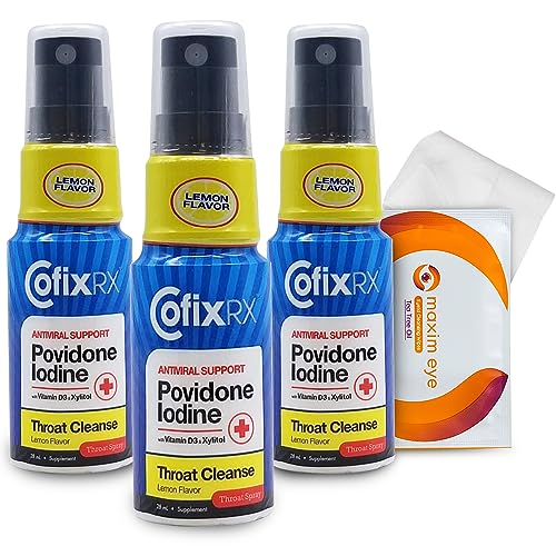 Specification: Maxim Eye CofixRx Throat Spray 3 Pack Antiviral and Allergy Support Povidone Iodine Throat Cleanse and Immunity Boost, 28ml (Total 84ml) Lemon Flavor Supplement Triple Action Formula