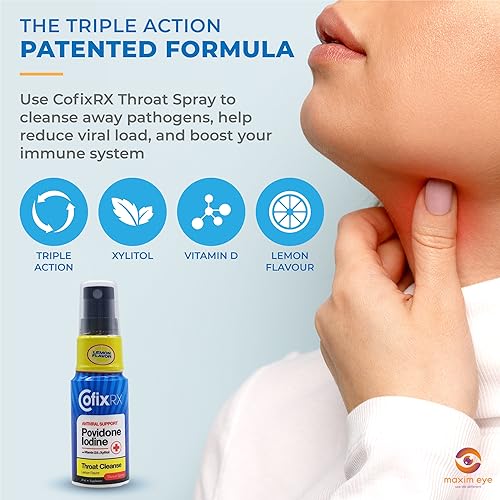 SIMPLE USE: Simply spray and enjoy the purity. a suitable fit for day-to-day use. CofixRX Throat Spray features the patented Triple Action Formula that includes Povidone Iodine, Xylitol, and VitaminD-3.