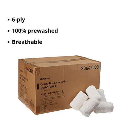 McKesson Gauze Bandage Rolls, Non-Sterile, 6-Ply, 4 1/2 in x 4 1/10 yds, 100 Count