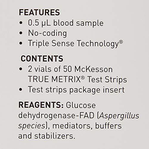 Specification: McKesson True METRIX Self-Monitoring Blood Glucose Test Strips – Supplies for Diabetes Self Monitor Systems, 100 Strips, 4 Packs, 400 Total