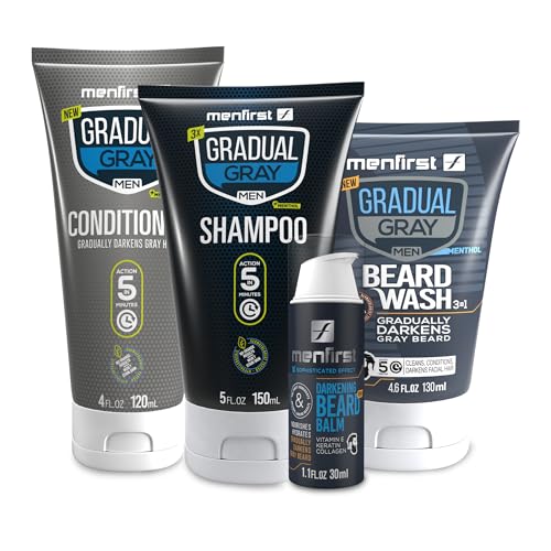 MENFIRST – Gray Darkening Beard Balm, Beard Wash, Hair Conditioner & Gray Reducing Shampoo Bundle