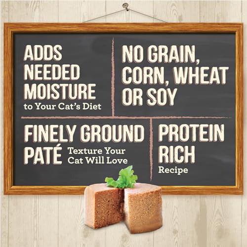 This healthy high protein cat food pate is made without grains and is a soy free cat food with a holistic blend of added vitamins, minerals and nutrients, like taurine, for adult cats