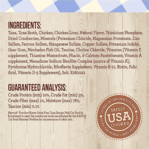 Merrick Purrfect Bistro Pate Cat Food, Tuna Recipe. Premium, Soft Grain Free, Soy Free And High Protein Adult Canned Cat Food