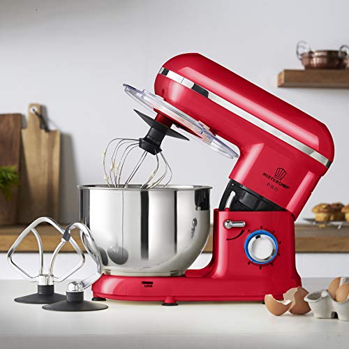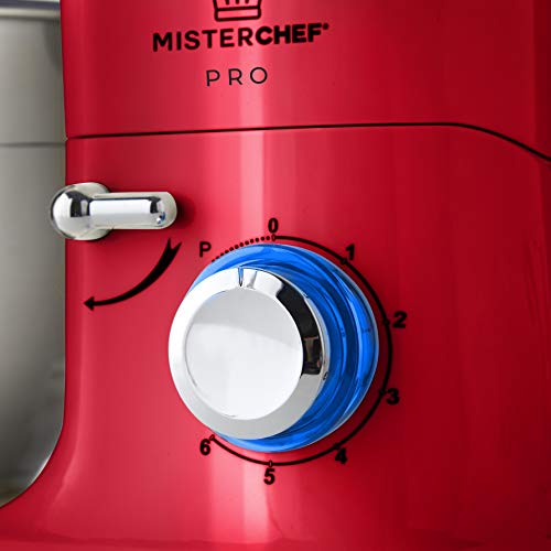 MisterChef® PRO Professional Electric Kitchen 1600W Food Stand Mixer – RED – BIG BOWL – 3 Attachments: Eggbeater, Dough Hook & Stainless Steel Whisk – 5.5L Stainless Steel Bowl