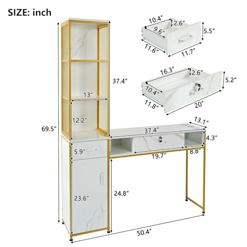 Specification: Modern Barber Salon Station with Lockable Drawer and Ample Storage Space, Beauty Spa Equipment for Hair Stylists, White