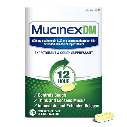 Specification: Mucinex DM 12Hr Chest Congestion & Cough Medicine For Adults, Cold And Cough Medicine for Excess Mucus Relief, 600 mg Guaifenesin & 30 mg Dextromethorphan HBr, 20 Bi-Layer Tablets