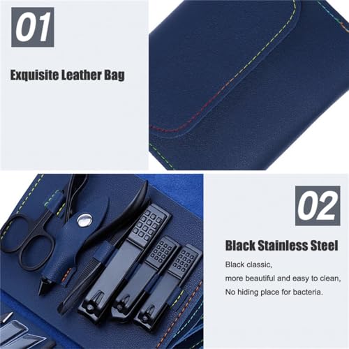 Nail Clippers Set Leather Bag Nail Clipper Manicure Pedicure Men Travel Home Nail Care Tools Stainless Steel,16pcs Blue (16pcs Coffee)