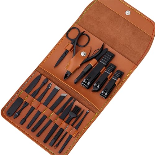 Specification: Nail Clippers Set Leather Bag Nail Clipper Manicure Pedicure Men Travel Home Nail Care Tools Stainless Steel,16pcs Blue (16pcs Coffee)