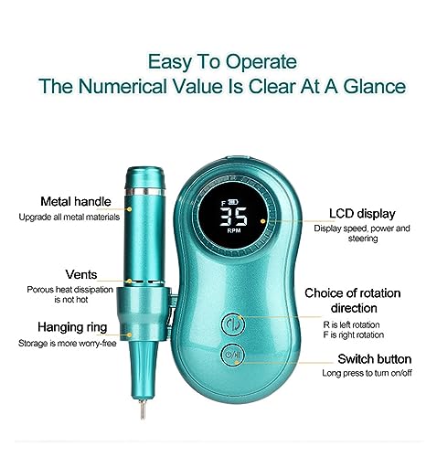 Specification: Nail Drill, Nail Drill Machine 35000RPM Electric Portable Rechargeable Long Battery Life for Manicure Pedicure with Cutter Art Machine Tool Professional Nail Tools