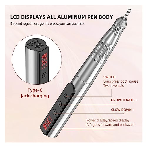 Adjustable speed and direction This professional nail machine has 5 speeds, up to 35000 revolutions per minute. This drill is easy to operate and rotates clockwise and counterclockwise, making it perfect for left-handed or right-handed individuals. This is a user-friendly electric file for acrylic or natural use!
