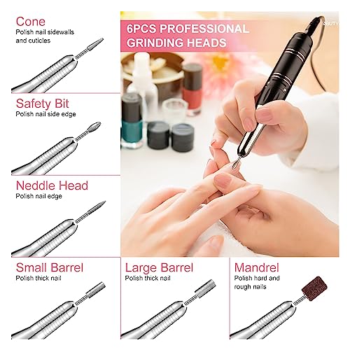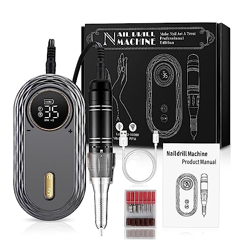 Nail Grinding Machine 35000RPM Nail Drill Manicure Set, Electric Nail Drill Machine, Rechargeable Salon Gel Nail Polish Sander, Professional Tool for DIY Home or Salon Mani-Pedis
